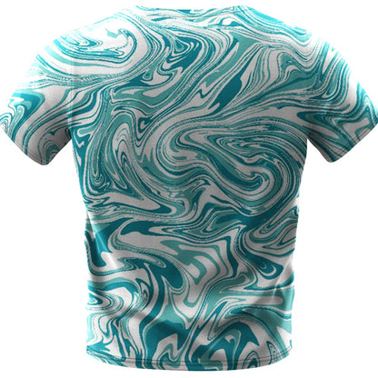 Embrace the serenity of the ocean’s embrace with the “Aqua Swirl: Calming Currents” T-shirt. The shirt features a mesmerizing pattern of swirling turquoise and white, reminiscent of the gentle flow of water in a tranquil sea. The design brings to mind the peaceful motion of waves and the soothing rhythm of tides, offering a wearable piece of art that conjures the calming influence of the ocean. Perfect for those who seek a touch of tranquility in their wardrobe, this T-shirt is not only a statement piece but also a wearable reminder of the relaxing power of nature’s waterways. Whether you’re out for a casual gathering or just enjoying a quiet moment to yourself, let this garment wrap you in the cool comfort of its aqueous design.