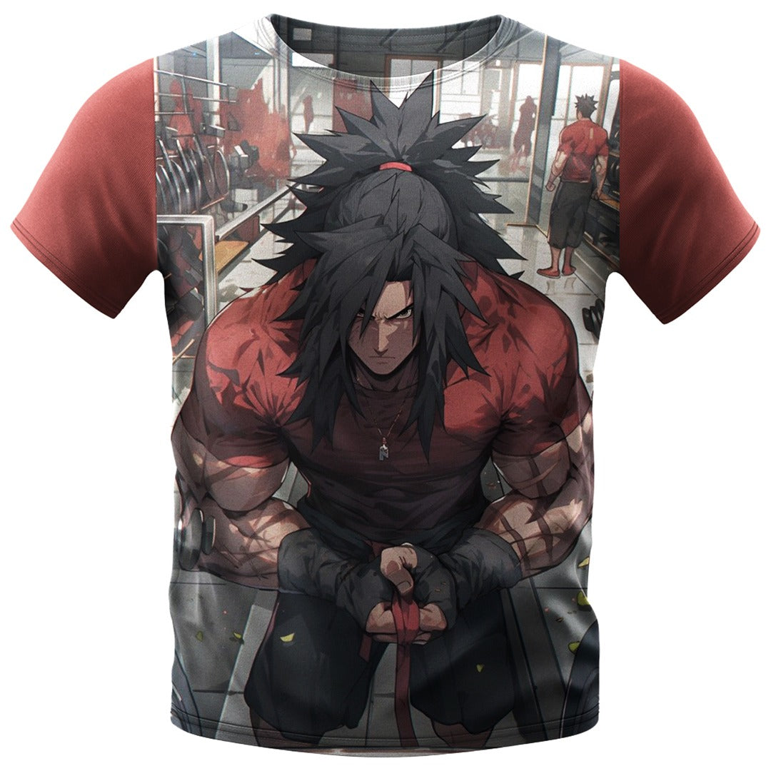 Unleash the warrior within with the “Bound Strength: Warrior’s Resolve” T-shirt. This garment showcases a powerful and detailed illustration of a muscular warrior in a dynamic and imposing pose. The character, with a stern expression and intense gaze, embodies strength and determination, as if caught in a moment of quiet before the storm. The vivid red tones of the character’s attire accentuate the energy and passion of the warrior spirit, while the background, illustrating a gym setting, emphasizes a commitment to training and discipline. This T-shirt is perfect for fitness enthusiasts, fans of dynamic character art, and anyone who draws inspiration from the unyielding strength of the human spirit. Wear it as a testament to your own resolve and a reminder that true power lies in the will to overcome challenges.