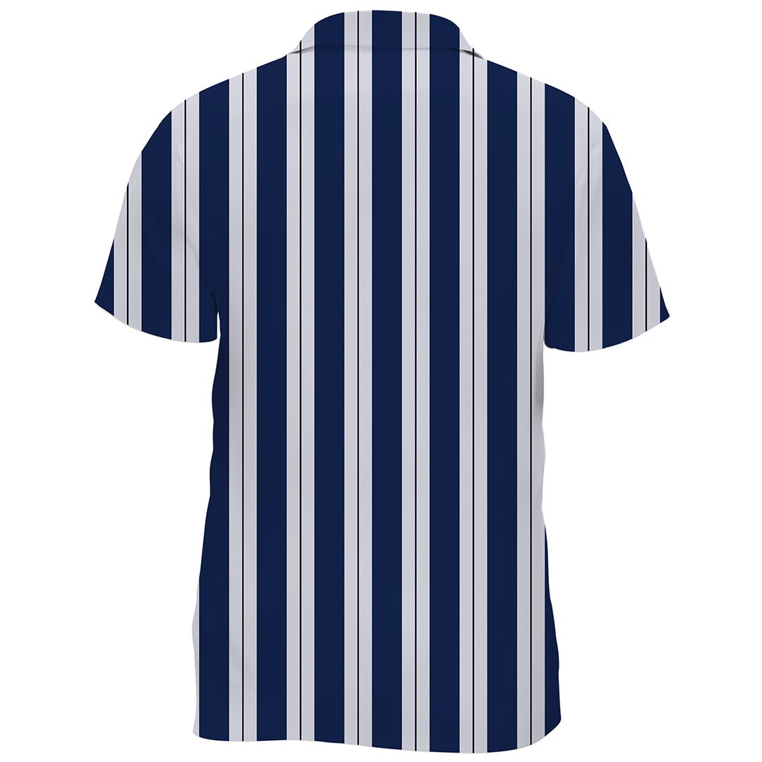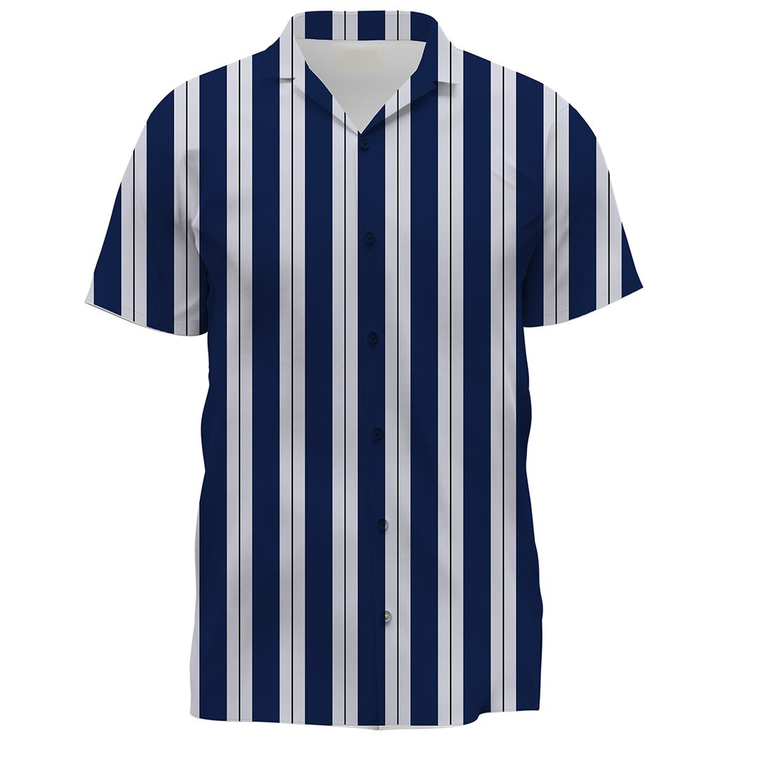 This shirt captures the timeless essence of nautical style with its classic blue and white pinstripes. The design pays homage to the crisp, clean lines of sailor uniforms, while its simplicity speaks of a refined elegance that transcends trends. It’s the perfect garment for those who appreciate the understated sophistication of traditional patterns, whether you’re setting sail on the high seas or navigating the urban jungle. Versatile and stylish, it’s a staple piece that pairs well with everything from smart chinos to casual shorts, embodying the spirit of maritime adventure in every thread.