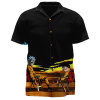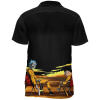 This shirt is a wearable snapshot of laid-back leisure, depicting two characters relaxing against a serene sunset backdrop. The design exudes a sense of calm and casual coolness, perfect for those moments when you want to slow down and enjoy the simpler aspects of life. The striking contrast of the vivid sunset hues against the shirt’s deep black base creates an eye-catching effect that’s both stylish and storytelling. It’s an ideal pick for the fan of leisurely afternoons, cool evenings, and the art of relaxation with a touch of whimsy.